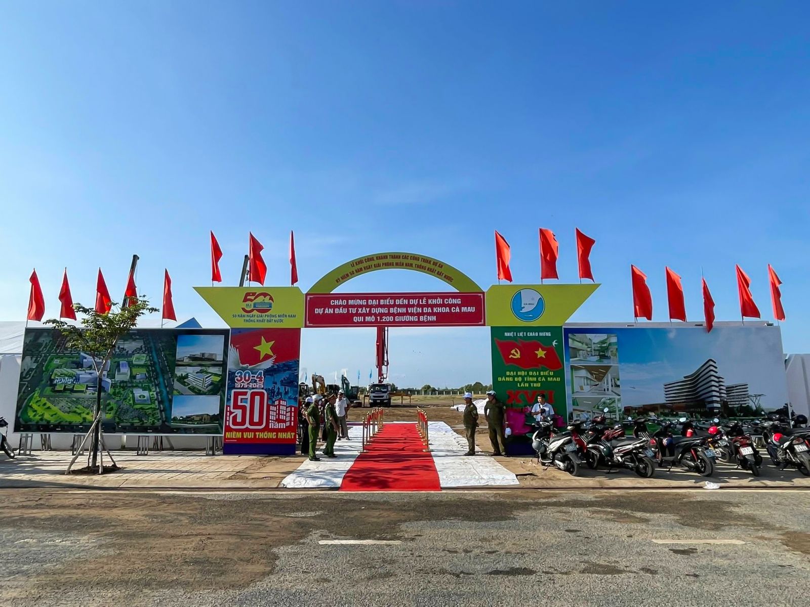 This morning (April 19), Mr. Nguyen Ho Hai - Secretary of the Ca Mau Provincial Party Committee; Mr. Pham Thanh Ngai - Deputy Secretary of the Provincial Party Committee, Chairman of the People's Committee of Ca Mau province, together with leaders of departments, branches, local authorities and people attended the Commencement Ceremony of the 1,200-bed Ca Mau General Hospital Investment Project.