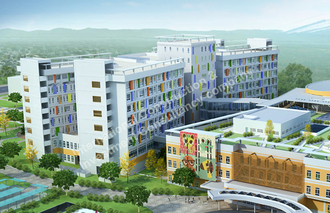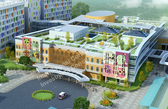 This hospital is built with 3 specialized blocks, each block from 13-15 floors with a total area of nearly 60,000 m2, this is a new facility for centers and specialized departments of Pediatrics according to the regulations. development orientation of the city's health sector.